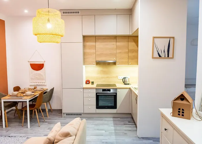 The 42 m² Fecske Delux Downtown With Parking Apartment Budapest is located in the centre of Budapest and offers quick access to Rakoczi Ter Market Hall, which is only a 6-minute walk away. The apartment has a terrace with views of the courtyard.